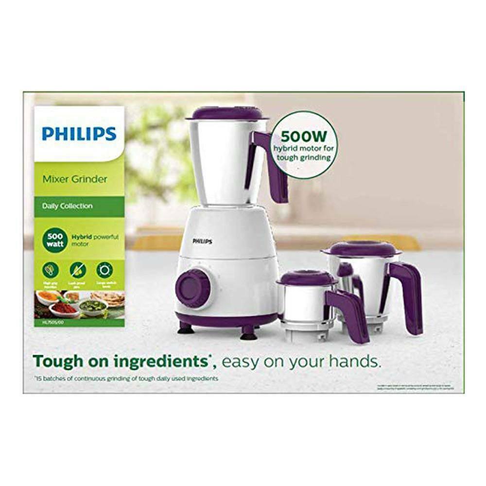 Philips HL7505 Daily Collection Mixer Grinder 500 W (White and Purple) PH-1001-MG