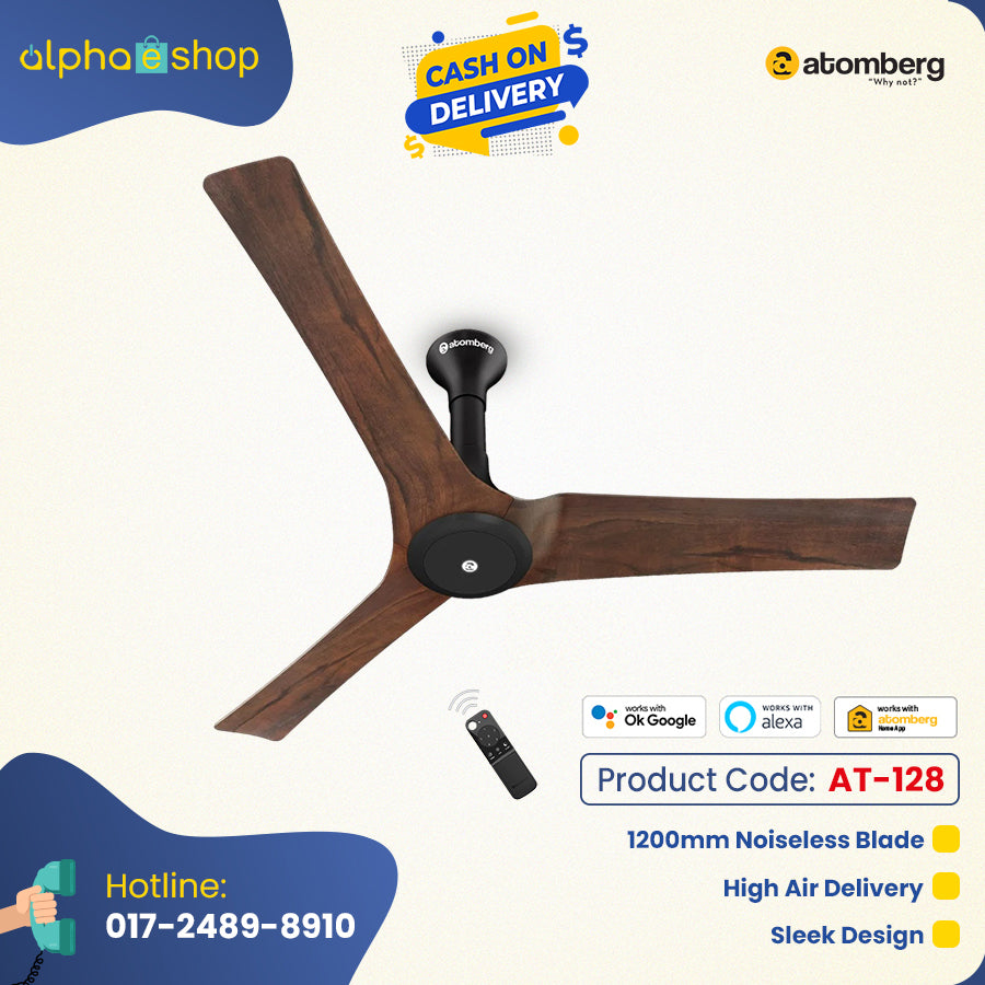 Atomberg Aris 48" Silent Energy Efficient BLDC Motor With Smart IoT And IR Remote Ceiling Fan (Brown) AT-128