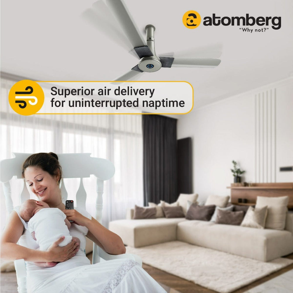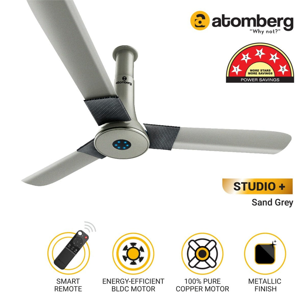 Atomberg Studio+ 48" 35W BLDC motor Energy Saving Anti-Dust Speed Indicator Light Ceiling Fan with Remote Control (Sand Grey ) AT-124