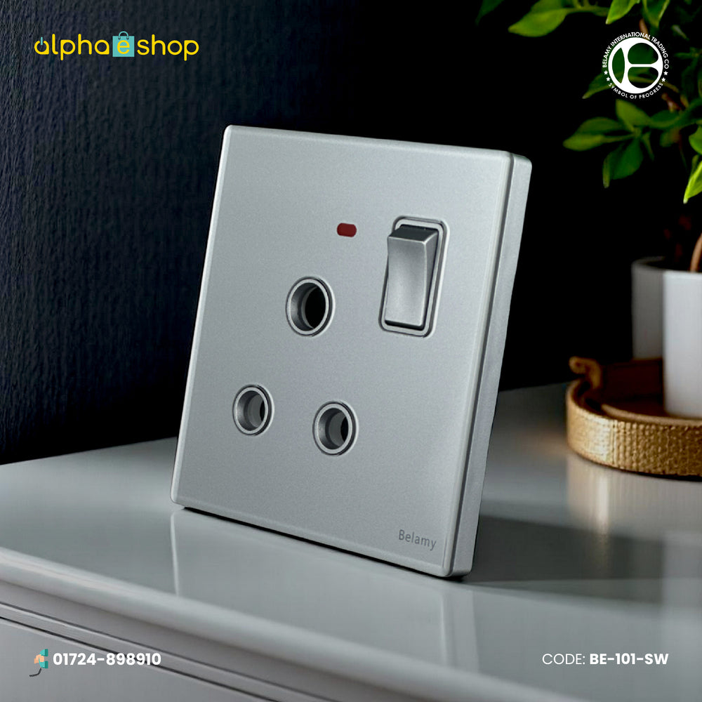 Belamy Sky Grey 1G 3-PIN Round Socket | BE-101-SW