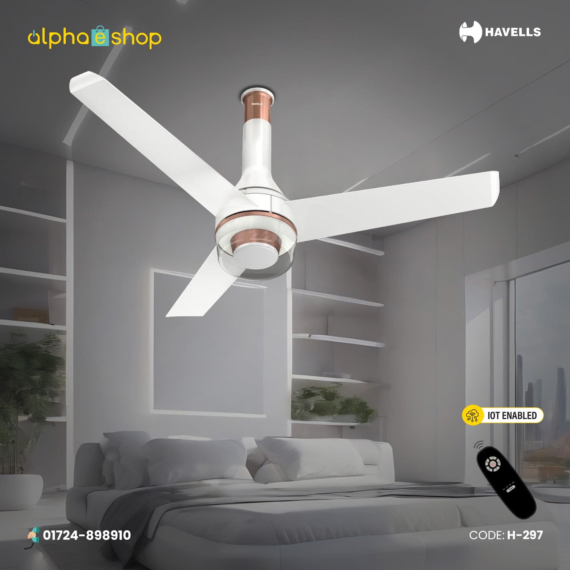 In Bangladesh, you can get the original From Havells Crista UL-1200 mm Dust Resistant IOT Enable Remote control BLDC Inverter Ceiling Fan (Pearl White) H-297 from Alphaeshop. We have a large collection of the latest modern Ceiling fans. Order Online Or Visit Alphaeshop to get yours at the lowest price. Havells Crista UL - 1200mm Dust Resistant IOT Enable Remote control BLDC Inverter Ceiling Fan (Pearl White) H-297 comes with a 1-year warranty.
