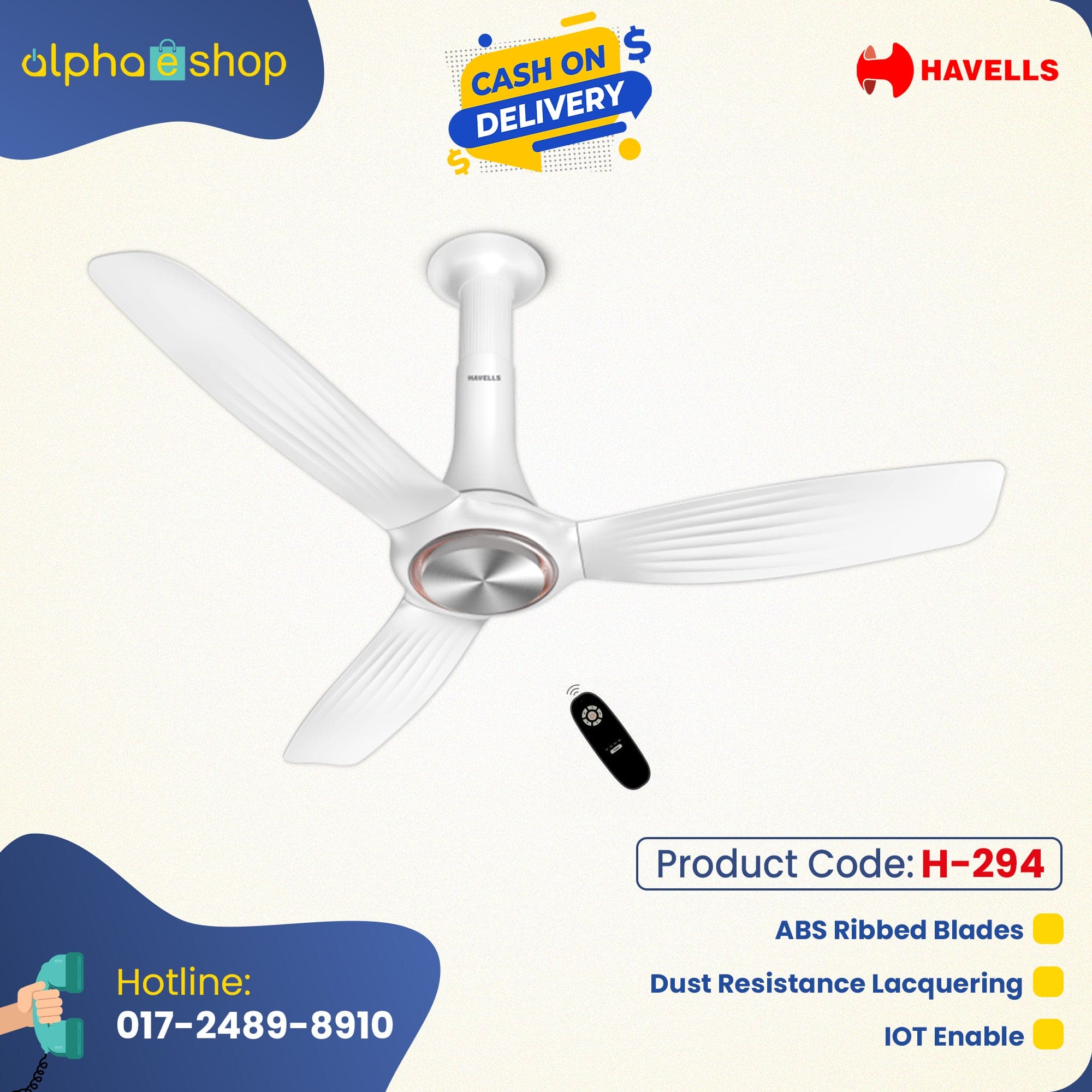 In Bangladesh, you can get the original from Havells Inox UL - 1200mm ABS ribbed blades Remote control IOT Enable Ceiling Fan (White) H-294 from Alphaeshop. We have a large collection of the latest modern Ceiling fans. Order Online Or Visit Alphaeshop to get yours at the lowest price. Havells Inox UL - 1200mm ABS ribbed blades Remote control IOT Enable Ceiling Fan (White) comes with a 1-year warranty.