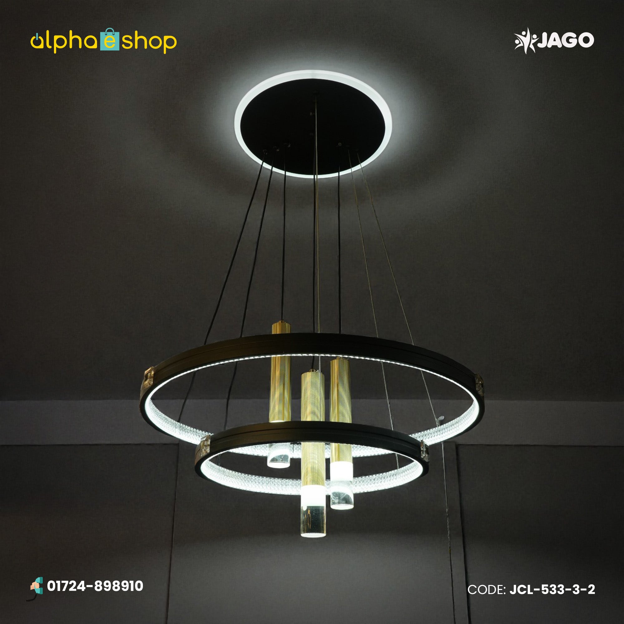 You can purchase the original Jago Modern LED Hanging Light from Alphaeshop in Bangladesh. We offer a wide selection of the latest Hanging lights for purchase to enhance your home decor. Order Online Or Visit our Alphaeshop Shop for the lowest price. jago Modern 2-layer Chandelier Light has a 2-year warranty.