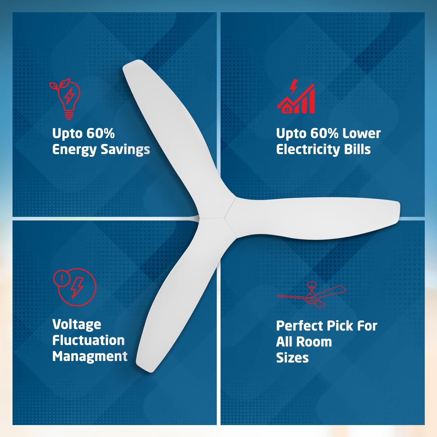 This ceiling fan is powered by a high-performance brushless DC motor, engineered for superior energy efficiency and long-lasting performance. Experience exceptional savings on your electricity bills without compromising on comfort.