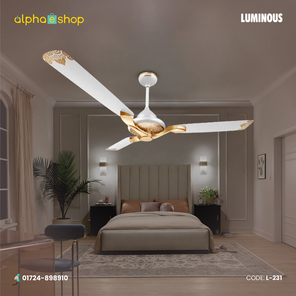 The Luminous Agaria White Ceiling Fan is a stylish and modern addition to your home's decor. Its clean and elegant design, coupled with its Agaria White color, makes it a perfect fit for various room types, such as dining rooms and bedrooms, where both functionality and aesthetics matter.