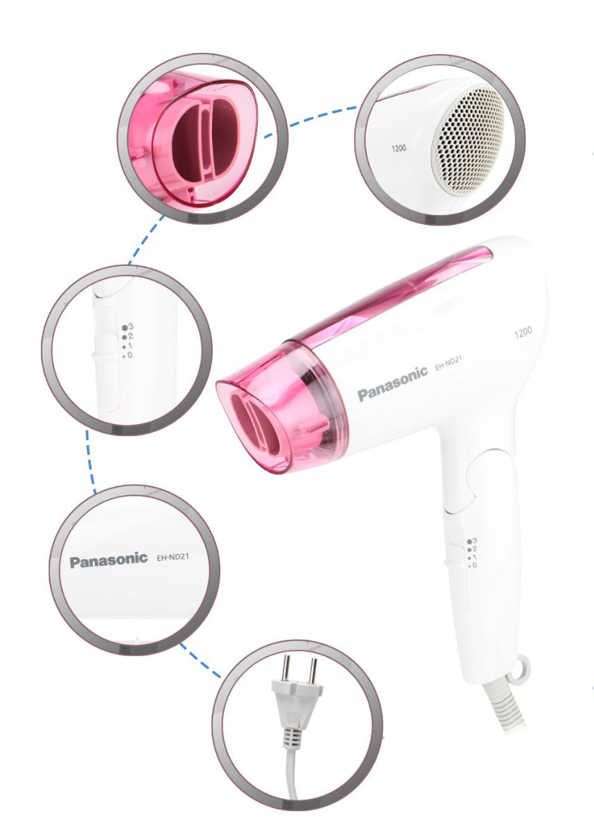The Panasonic Hair Dryer (EH-ND21) 1200W | PA-EH-ND21-P is a perfect combination of power, performance, and style. Equipped with a 1200W high-speed motor, it ensures fast, smooth, and gentle drying without damaging your hair. With 3 flexible speed and heat settings, including a cool air mode, this hair dryer gives you salon-style results at home while protecting your hairβs natural shine. Its foldable handle makes it compact and travel-friendly, while the ergonomic design ensures comfort during use. Built with overheat protection, it guarantees safe and reliable performance every day. If youβre searching for the best Panasonic hair dryer price in Bangladesh, the EH-ND21 is the ideal choice for effortless styling and daily hair care.