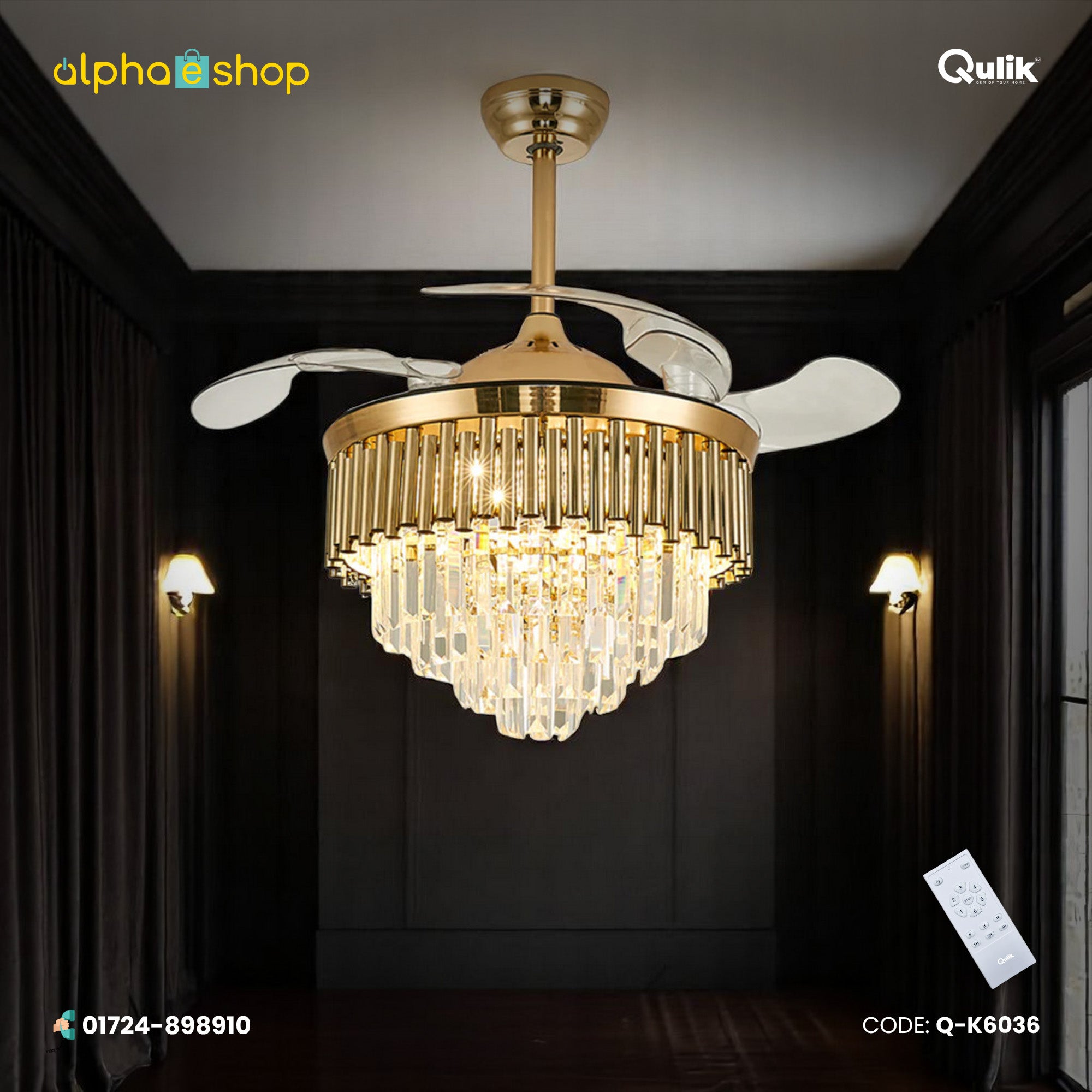In Bangladesh, you can get the original 48-inch Crystal Chandelier Retractable Invisible Blade Remote Ceiling Fan From Alphaeshop. We have a large collection of the latest Chandelier fans to purchase for your home decor. Order Online Or Visit our showroom Alphaeshop to get yours at the lowest price. The Crystal Chandelier Retractable Remote Ceiling Fan comes with a 2-year warranty.