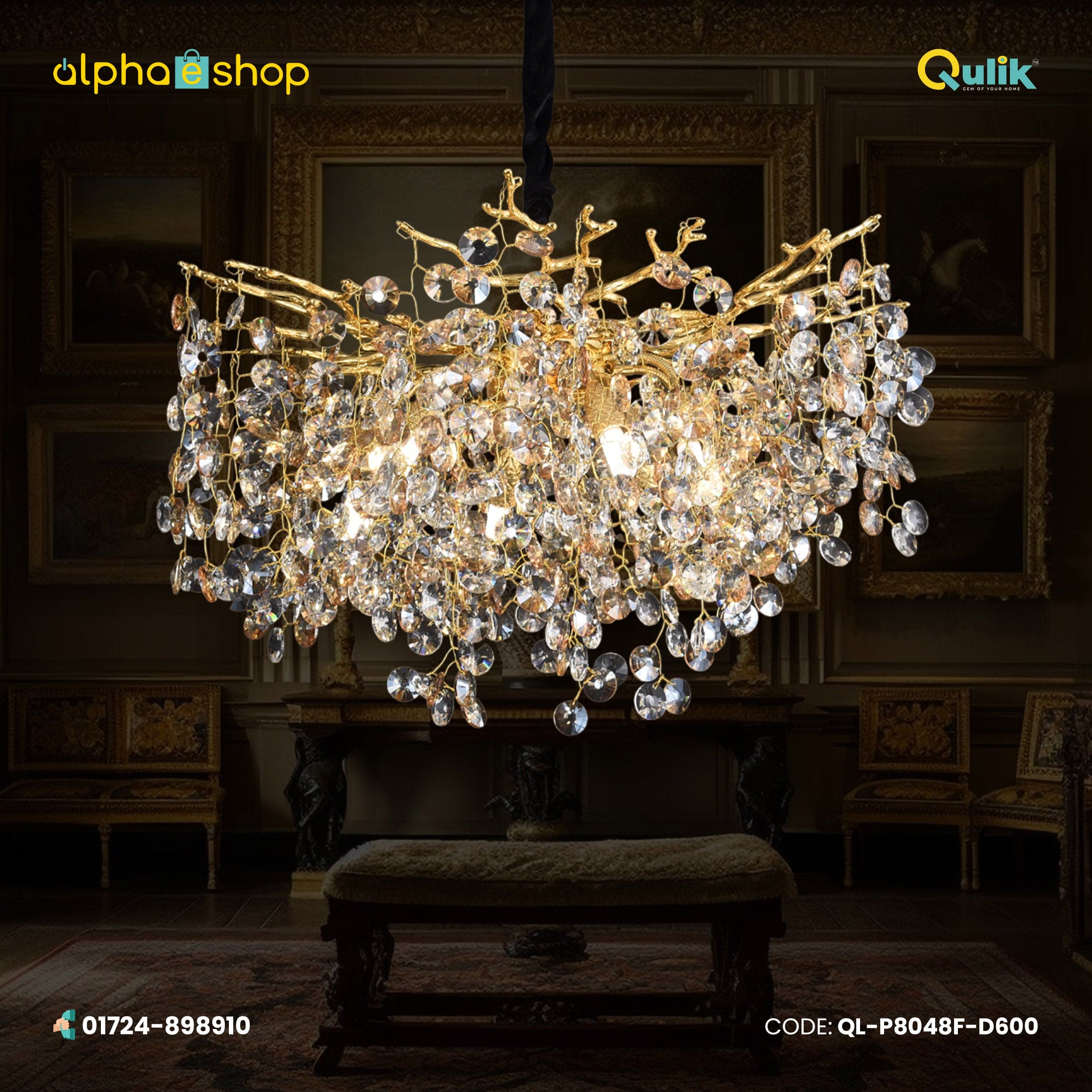 The latest price of Qulik Opulence Drop Luxury Decorative Chandelier Electroplated Ceiling Lights (QL-P8048-D600) in Bangladesh is 39500৳. You can buy the Qulik Opulence Drop Luxury Decorative Chandelier Electroplated Ceiling Lights (QL-P8048-D600) at the best price from our website or visit our showrooms.