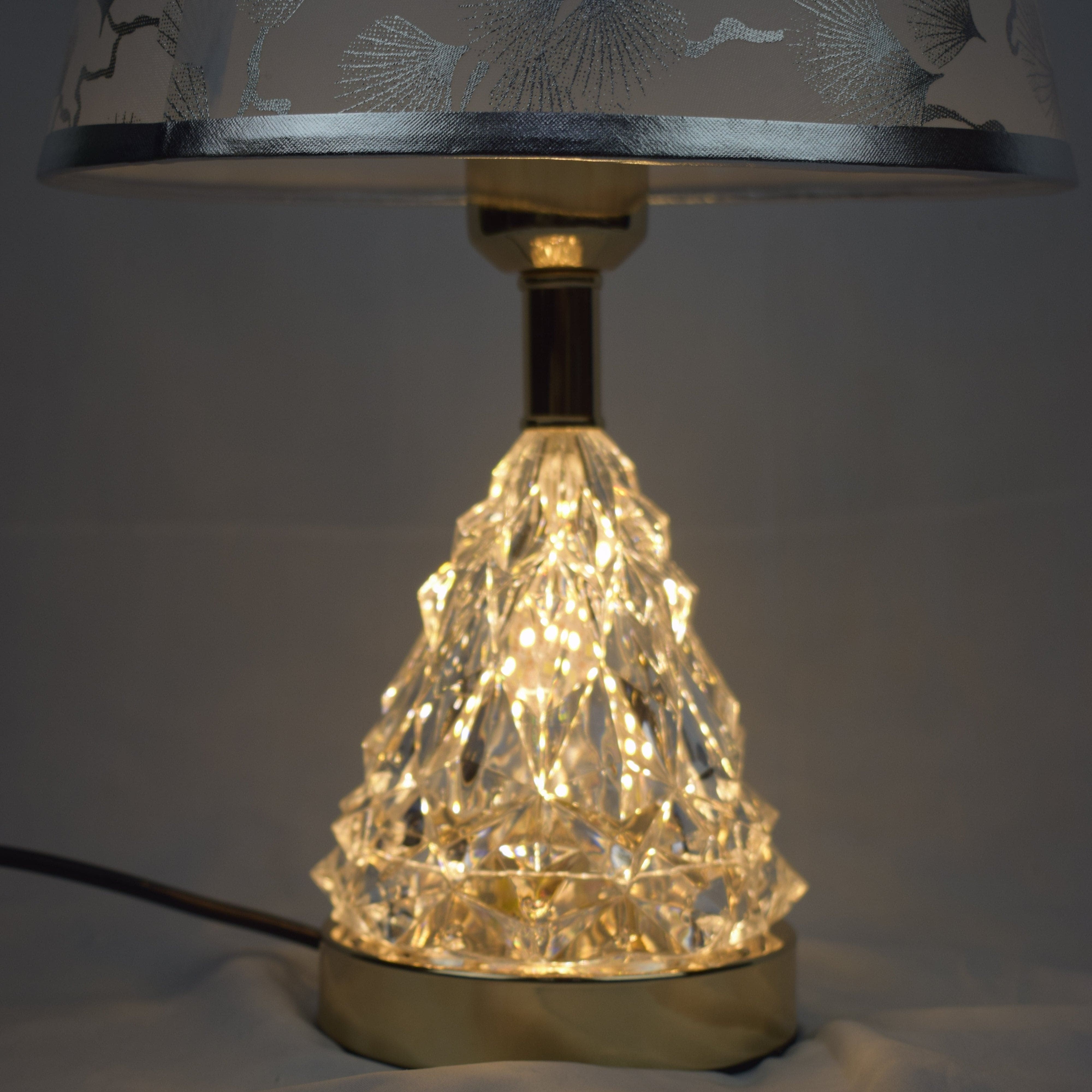 Illuminate your space with the elegance of the Crystal Bloom Table Lamp, a perfect piece for those who appreciate nature-inspired decor with a touch of luxury.