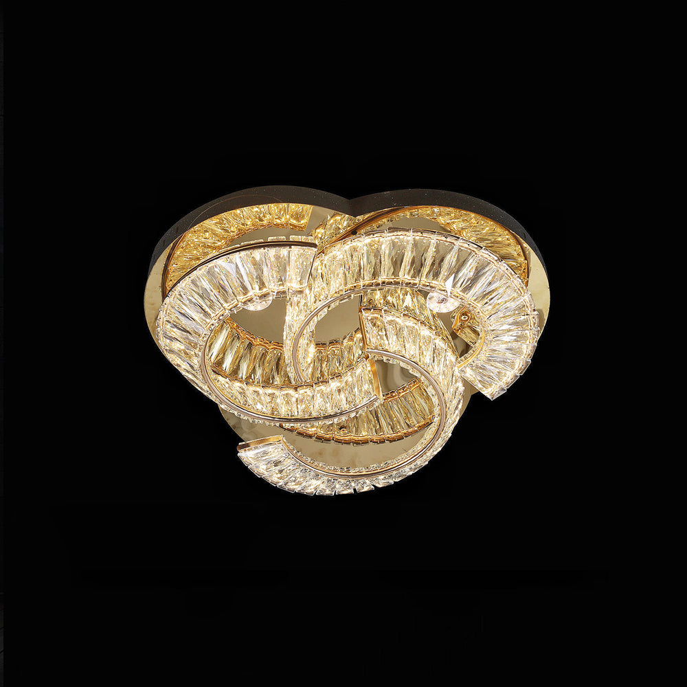 | The Qulik Flush Mount Crystal LED Chandelier is perfect for spaces with lower ceilings or where a more streamlined aesthetic is desired. The interlocking circular design with dazzling crystal accents adds a touch of sophistication, while the flush mount installation keeps the room open and airy. |