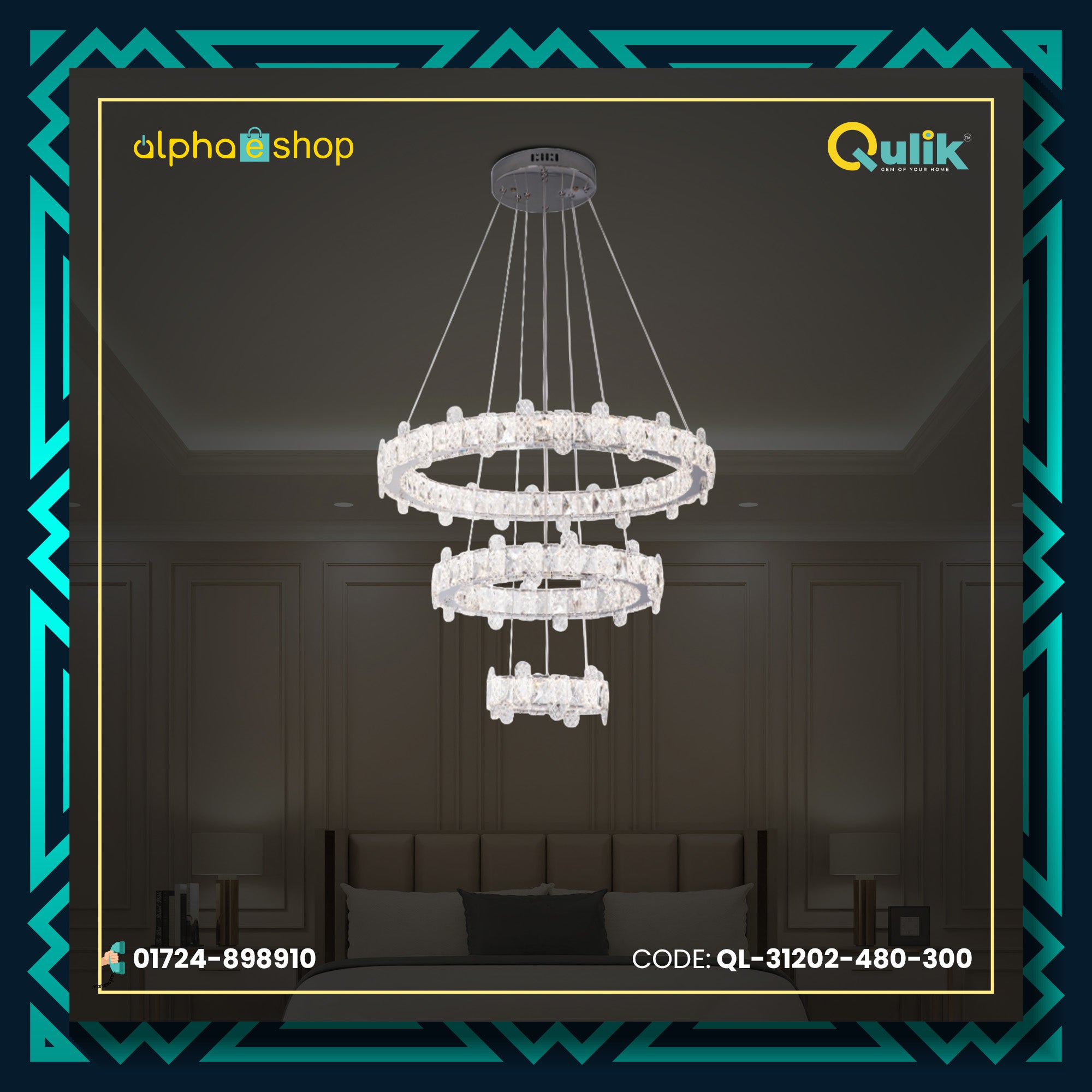 You can get the original Qulik Modern Chandelier Decorative 3-Layer Ring LED Ceiling Light (QL-31202-480-300) From Alphaeshop In Bangladesh. We have a large collection of the latest Crystal Chandelier lights to purchase for your home decor. Order Online Or Visit our Alphaeshop Shop for the lowest price. Qulik Modern Chandelier Decorative 3-Layer Ring LED Ceiling Light (QL-31202-480-300) has a 2-year warranty.
