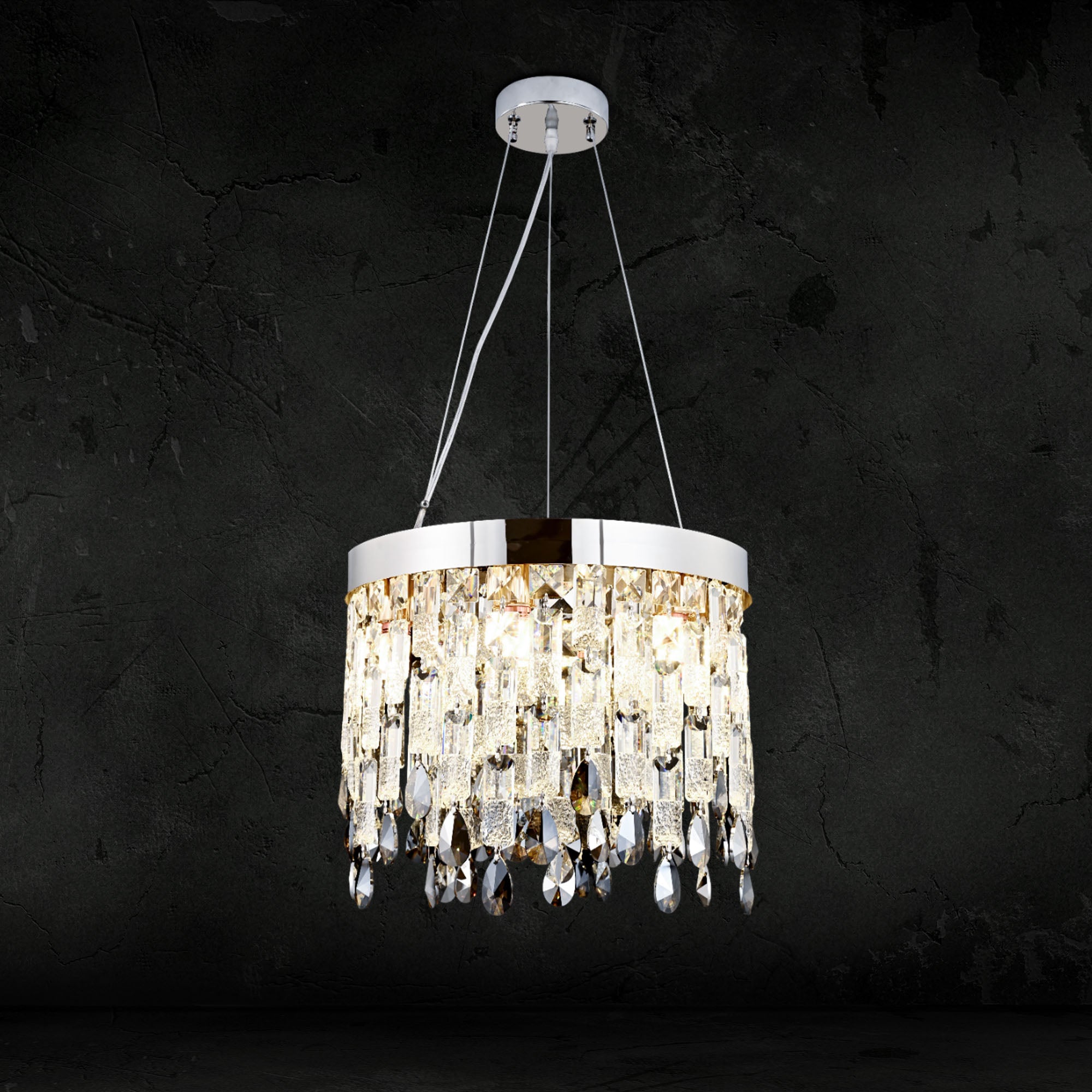 Versatile Material: Crafted with a blend of acrylic, crystal, and iron, this ceiling light seamlessly combines different materials to create a cohesive and sophisticated aesthetic.