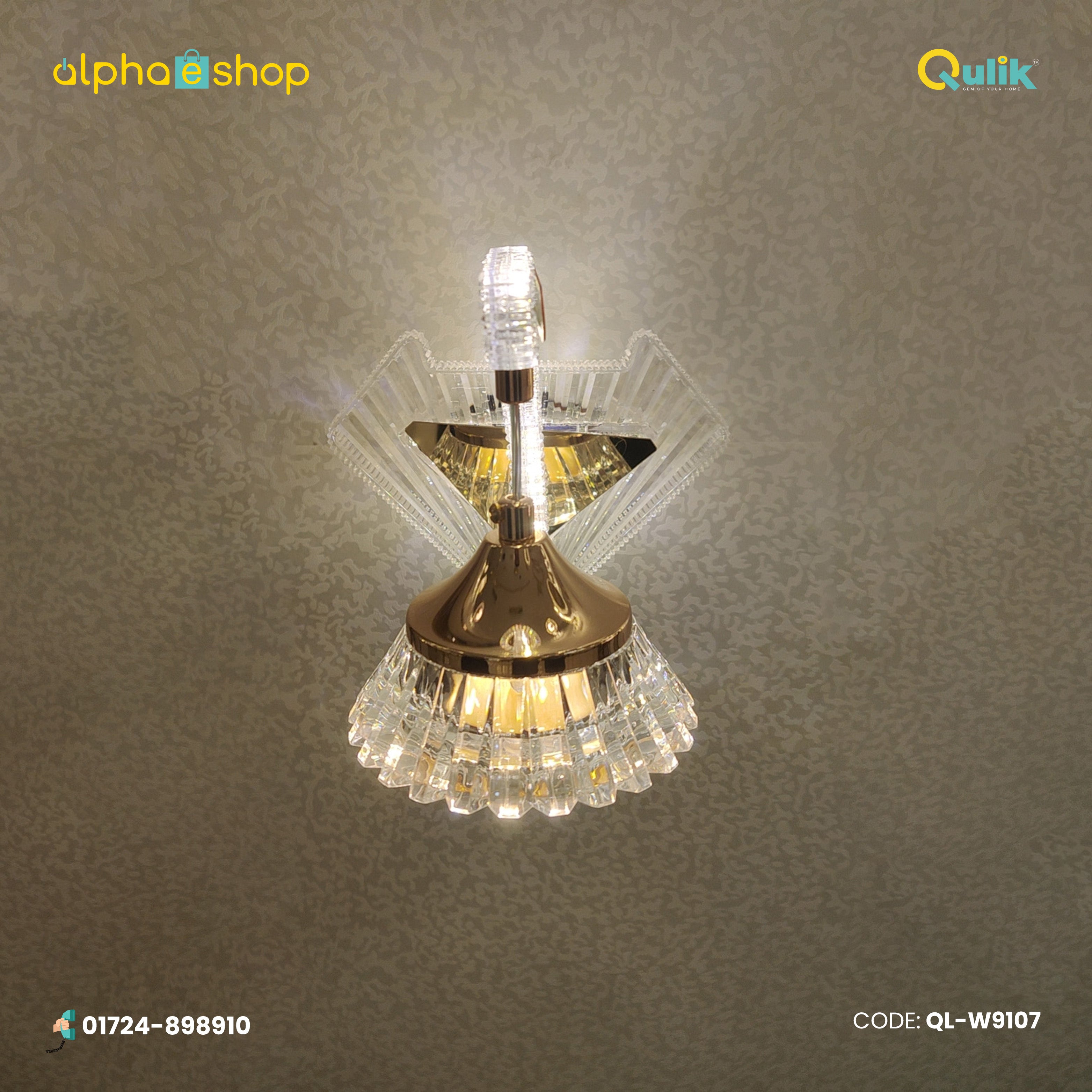 You can get the original Qulik Modern Decorative Shaded Wall Lamp (QL-W9107) From Alphaeshop In Bangladesh. We have a large collection of the latest Crystal Chandelier lights to purchase for your home decor. Order Online Or Visit our Alphaeshop Shop for the lowest price. Qulik Modern Decorative Shaded Wall Lamp (QL-W9107) has a 2-year warranty.