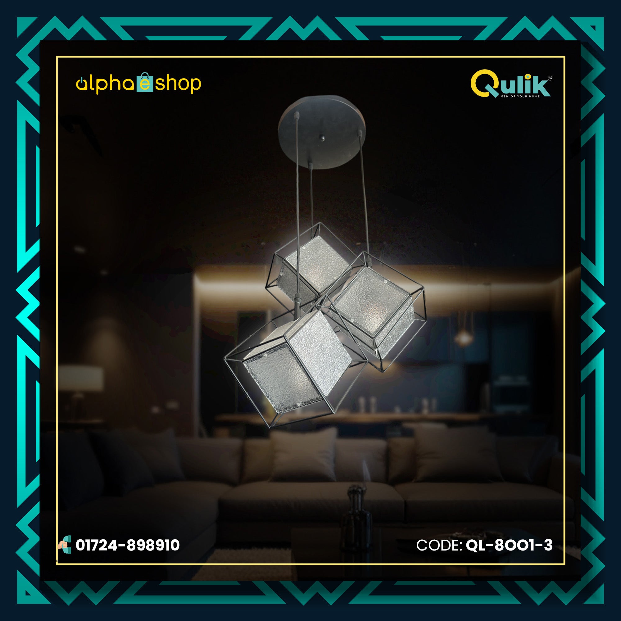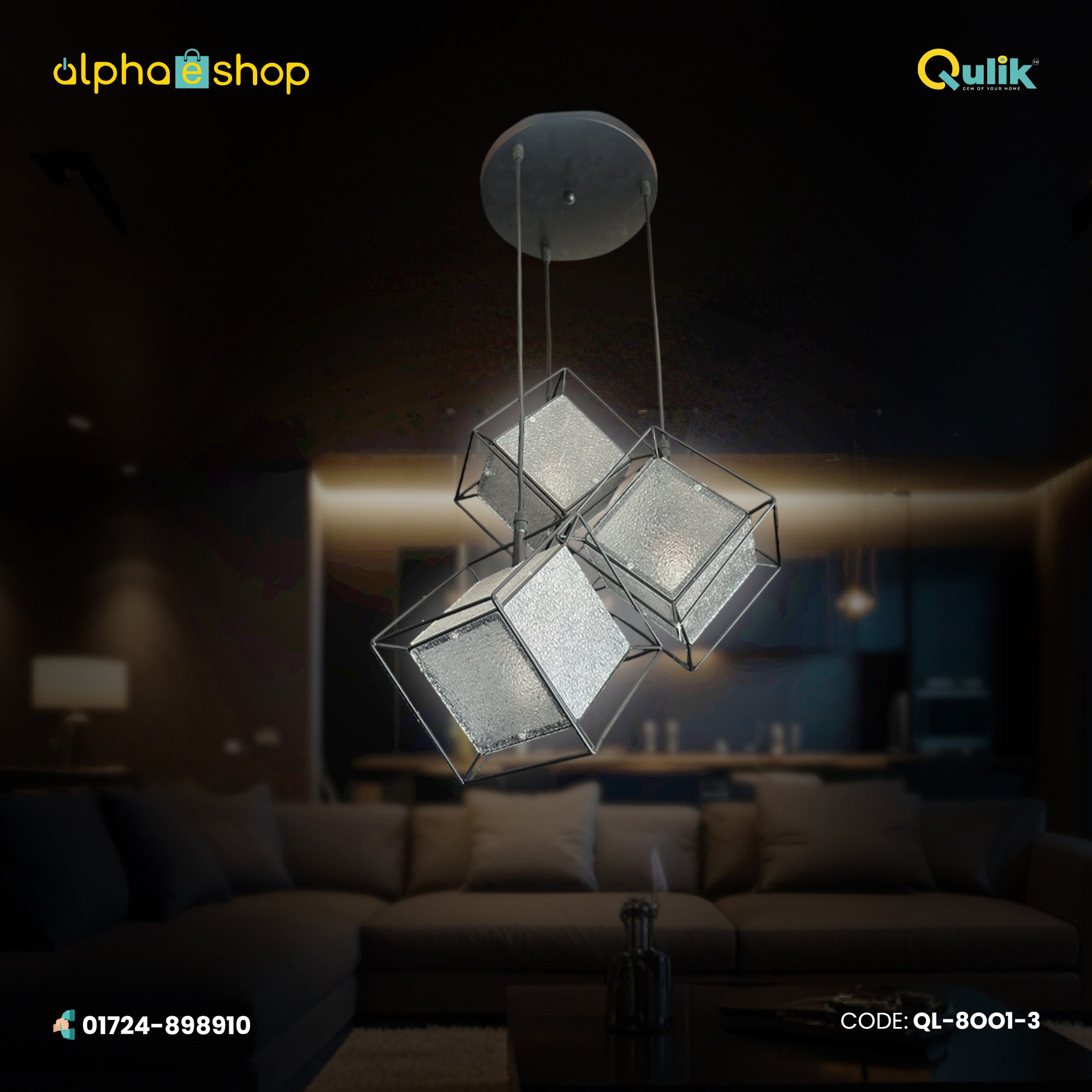 You can get the original Qulik Modern Luminous Cubix Black Hanging Lights (QL-8OO1-3) From Alphaeshop In Bangladesh. We have a large collection of the latest Crystal Chandelier lights to purchase for your home decor. Order Online Or Visit our Alphaeshop Shop for the lowest price. Qulik Modern Luminous Cubix Black Hanging Lights (QL-8OO1-3) has a 2-year warranty.
