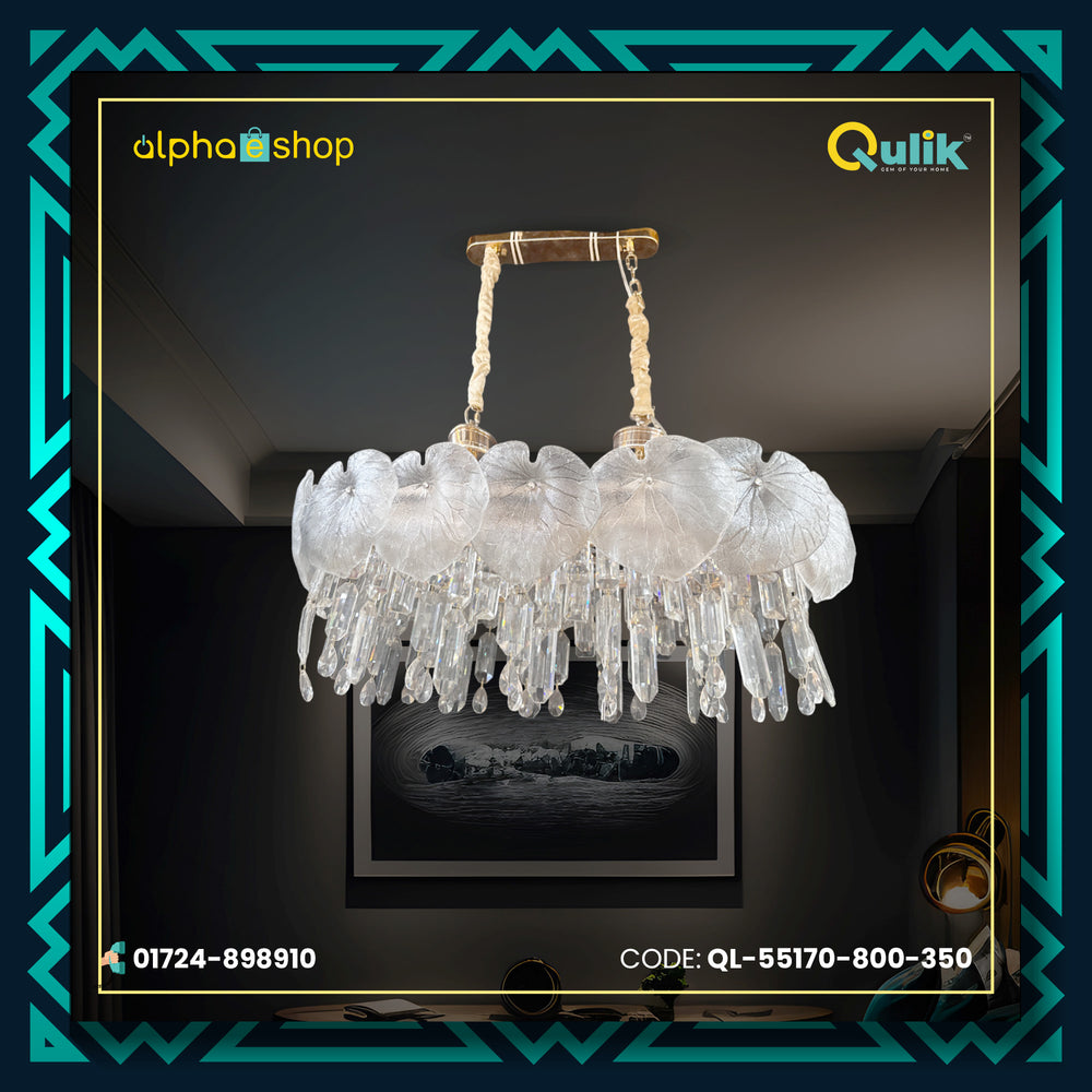You can get the Qulik Modern Luxury Chandelier with Clear Crystal Shades and Adjustable Hanging Length (QL-55107-800-350) From Alphaeshop In Bangladesh. We have a large collection of the latest Crystal Chandelier lights to purchase for your home decor. Order Online Or Visit our Alphaeshop Shop for the lowest price. Qulik Modern Luxury Chandelier with Clear Crystal Shades and Adjustable Hanging Length (QL-55107-800-350) has a 2-year warranty.