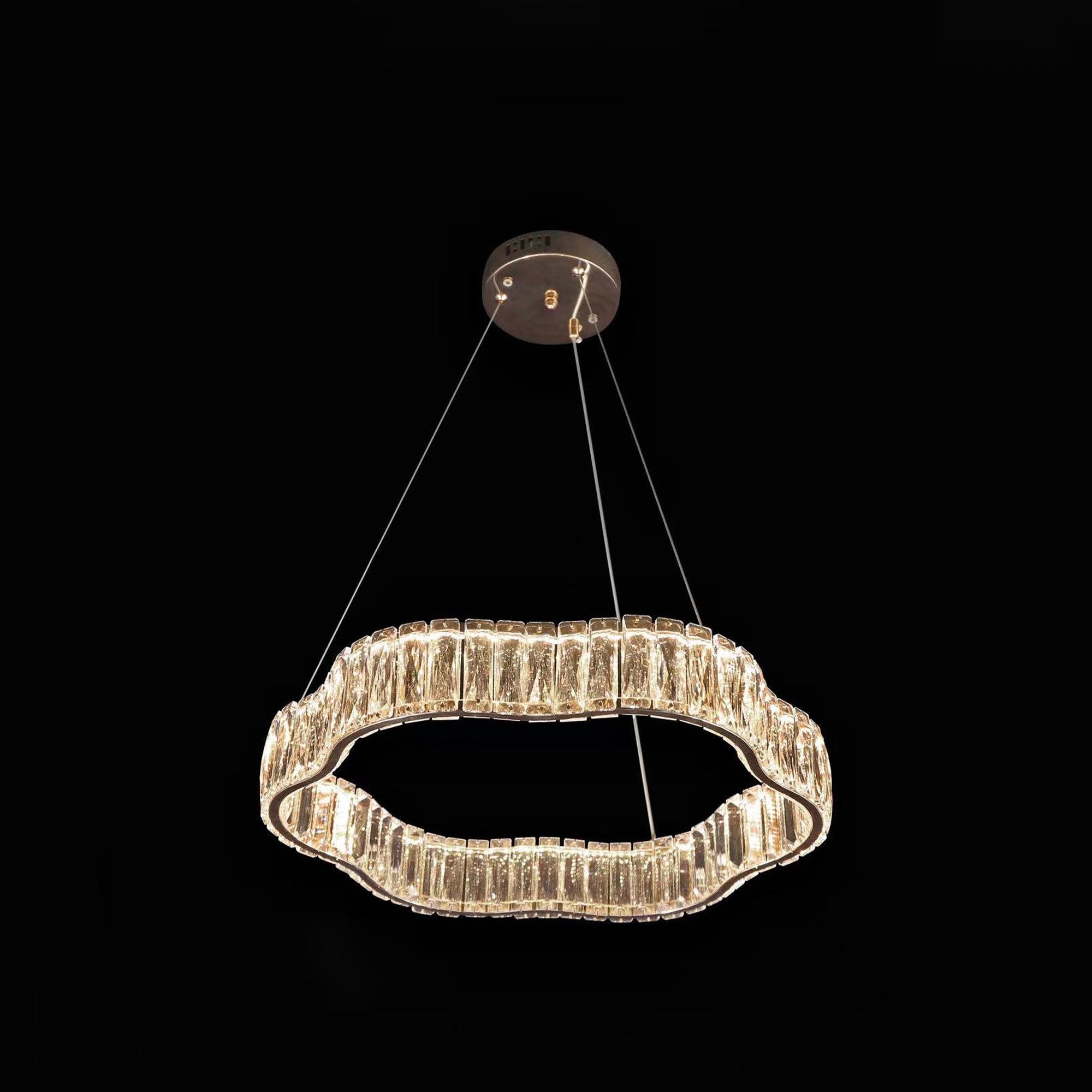 | The Qulik Oval Crystal LED Chandelier features a stunning design that blends modern style with luxurious elements. The crystal accents beautifully reflect light, creating a dazzling effect that enhances the ambiance of any room. |