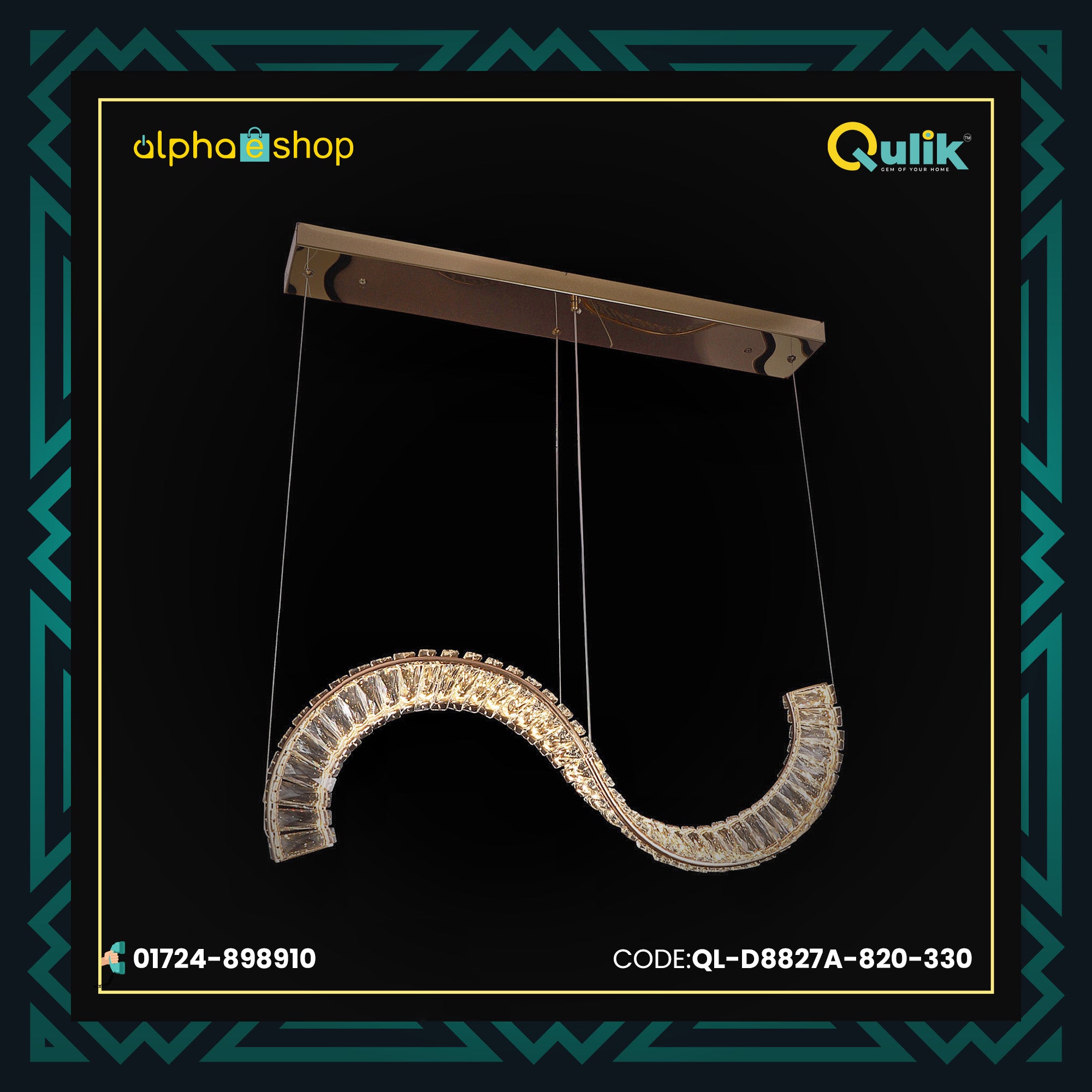 You can get the original Qulik Crescent Wave Luxury LED Crystal Chandelier Pendant Light (QL-D8827A-820-330) From Alphaeshop In Bangladesh. We have a large collection of the latest Crystal Chandelier lights to purchase for your home decor. Order Online Or Visit our Alphaeshop Shop for the lowest price. Qulik Crescent Wave Luxury LED Crystal Chandelier Pendant Light (QL-D8827A-820-330) has a 2-year warranty.
